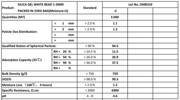 Hạt hút ẩm silica gel màu trắng 2-4mm moisture loss <2%